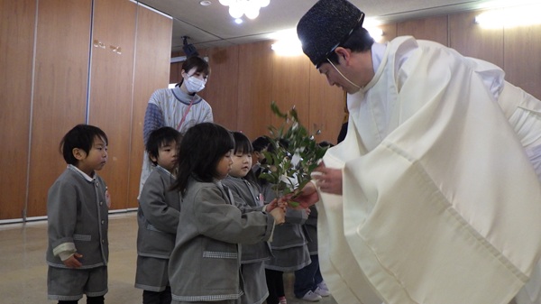 今日は、うさぎ組さんが神社庁ホールで2月の月次祭に参加させていただきました。初めてのホールに少しドキドキしながらも、神主さんの姿や太鼓の音に興味津々な子どもたち。お祓いを受け、一人ずつ玉串を奉納して、神様にご挨拶をすることができました。…
