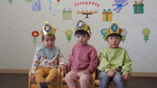 今日、保育部で2月のお誕生会がありました。園長先生とアンパンマンと食パンマン、ジャムおじさん、バイキンマン、ダダンダンがお祝いに来てくれました。園長先生から、「2月は、風邪が流行る季節ですね。手を洗って、ごはんを残さずいっぱいたべましょう… -