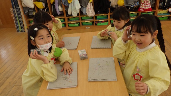 年長組さんでは、卒園記念のオルゴール作りをしました♡ネジを回すと園歌が流れ、「すごい!園歌だ!」と子どもたちは驚いた様子でした。いつもと違うペンを使い、好きな絵をたくさん描いて仕上げました。金曜日にお持ち帰りしますので、ぜひお子さまと一緒…
