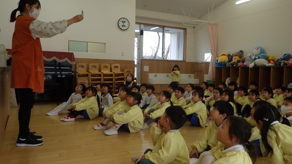 今日は年中組のお楽しみ会がありました!はじめに「先生当てクイズ」を行いました。アンパンマンのお面をつけた先生たちの正体を当てるゲームで、「全然わからないよ~」という声も聞かれましたが、最後の答え合わせでは大いに盛り上がりました。続いて「… -