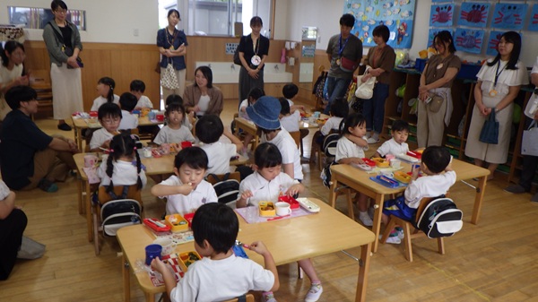 朝の当番活動や給食の様子を、お家の方に見ていただきました。
