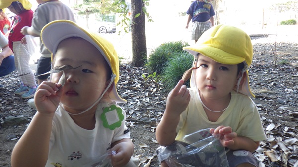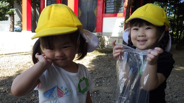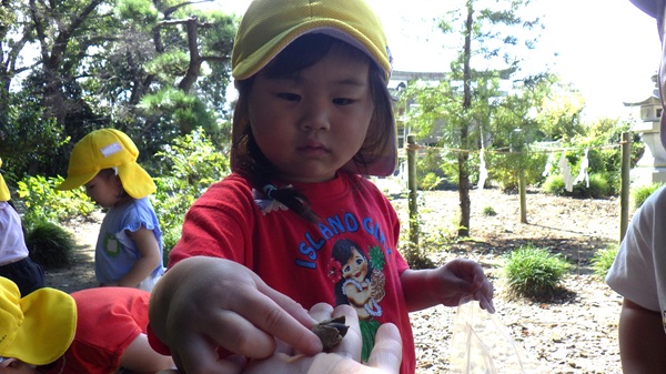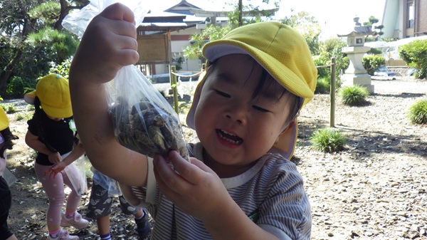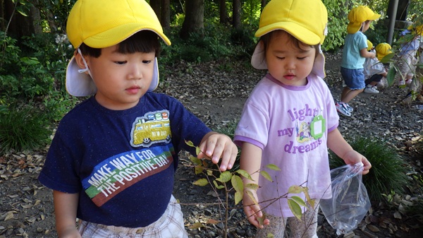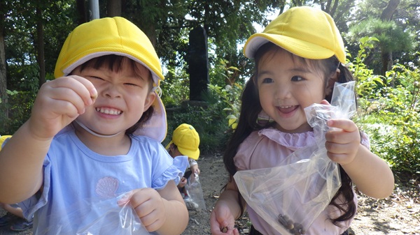 帽子をかぶったどんぐりを見つけたり、セミの抜け殻や黒いチョウを発見したりと、秋の訪れをたくさん感じることができました。