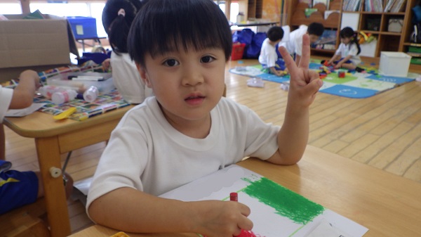 製作した旗は運動会当日に、年中組の学年テントに飾りますので楽しみにしてくださいね♪