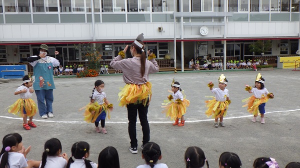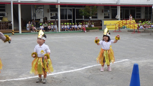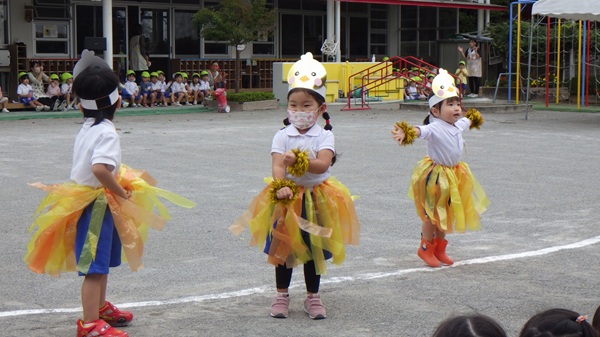 たくさんのお客さんが応援に来てくれて、最初は緊張気味のひよこ組さんでしたが、曲が始まると元気に身体を動かして、のびのびと踊ることができました!