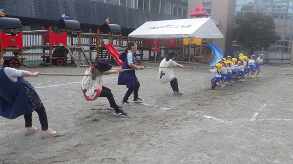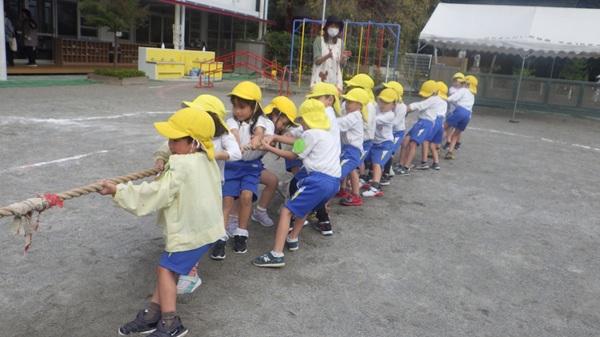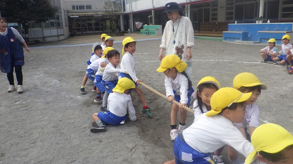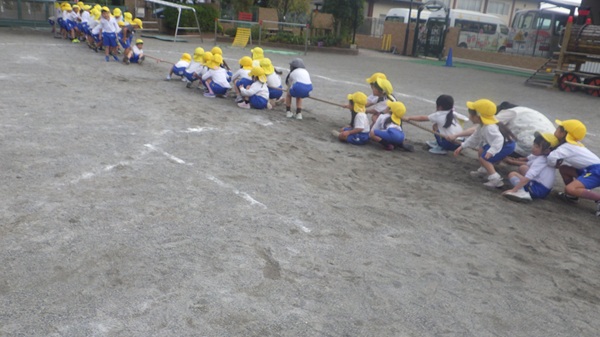 今日は「運動会ごっこ」として綱引きをしました。