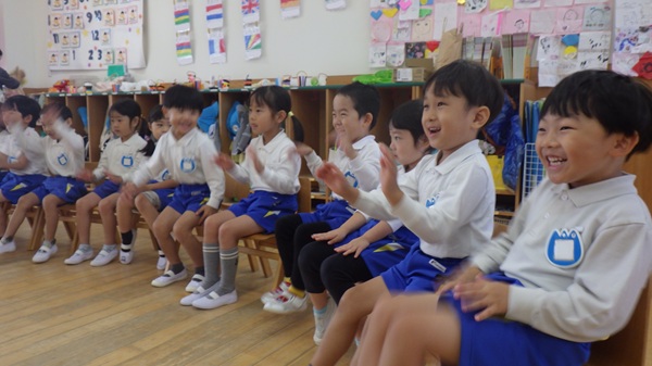 季節や月の名前をみんなで声に出して楽しく学んだり、今月の行事であるハロウィンにちなんで、お化けの名前や飾りの英単語を言ってみたりしました。