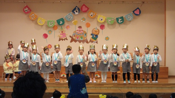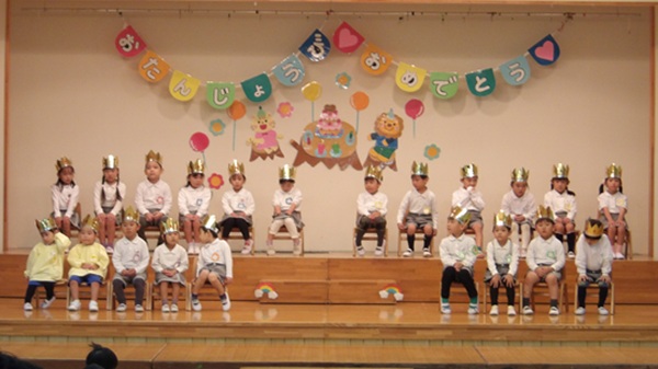 お誕生日を迎えるお友だちは、ステージの上で自分の名前をしっかりと発表し、学年ごとのメッセージも大きな声で堂々と言うことができました。