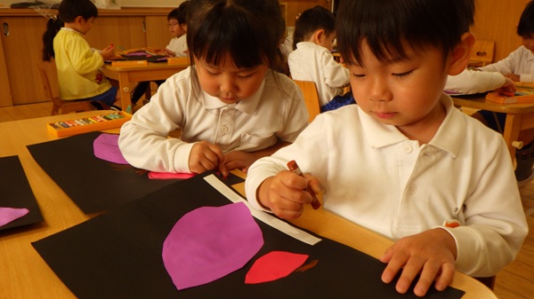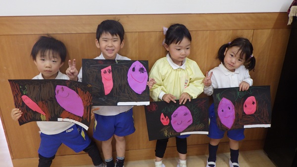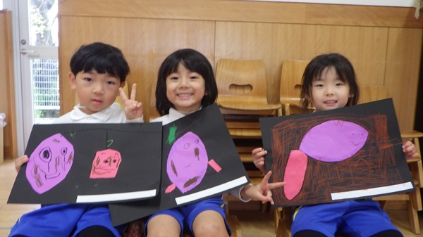 それぞれが、さつまいも掘りの思い出を思い浮かべながら取り組み、楽しい絵が完成しました。