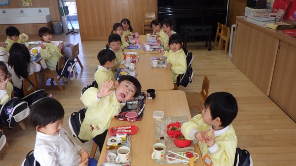 今日は、年少組さんが待ちに待ったお楽しみお弁当会を行いました!
