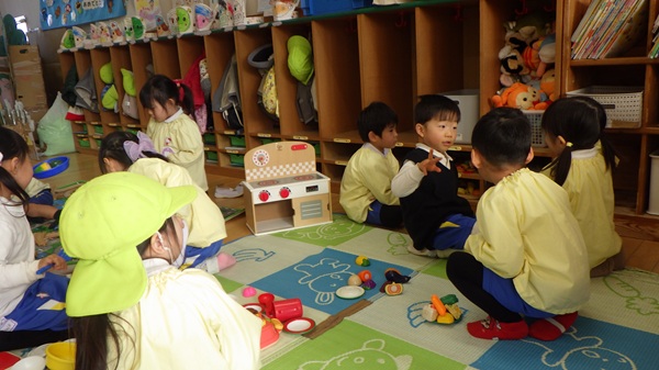 子どもたちはドキドキした様子で前日にクジを引いてお弁当を食べに行くクラス決めをし、お昼の時間になるとそれぞれのクラスに移動しました♪ 「○○ちゃんのお弁当美味しそう!」「○○くんと一緒で嬉しいな!」と会話を楽しみながら、いつもとは違う雰囲気の中でお昼の時間を楽しみながら過ごすことができました♡