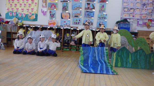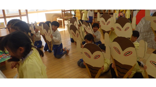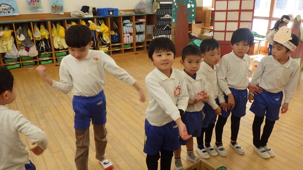 発表会ごっこ(年長組) 2025 12/18 こども園の様子 2025年12月18日2025年12月19日 年長組さんでは、発表会の劇での役をお友だちと交代しながら、劇遊びを楽しみました。他の役のセリフや動きもよく覚えており、友だち同士で教え合ったり、発表会を振り返ったりしながら、和やかな雰囲気の中で取り組むことができました♡ こども園の様子 カレンダー作り(年長組) お面作り(めろん組さん)