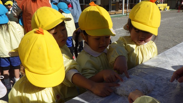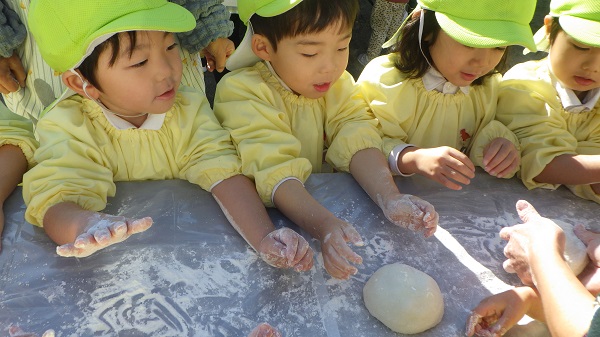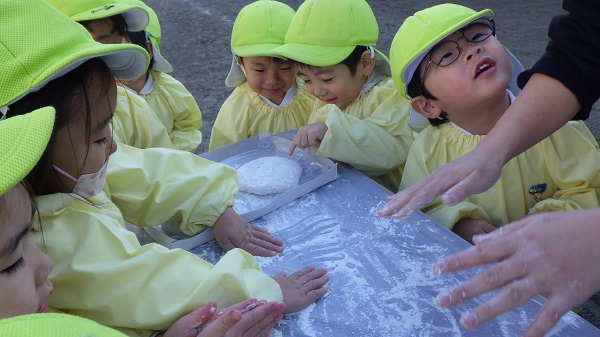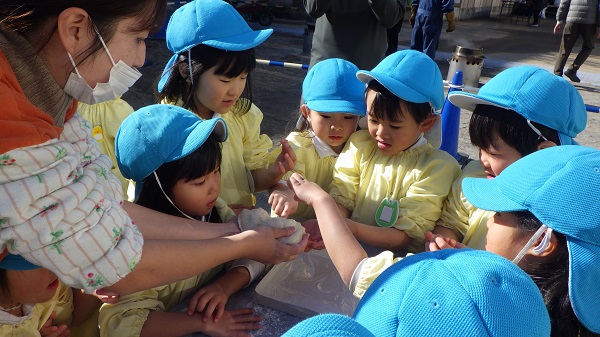 つきたてのおもちを触って「あったかぁ~い」「やわらかい♡」っと笑顔がこばれる子どもたち。いよいよ年末が近づいてきましたね!