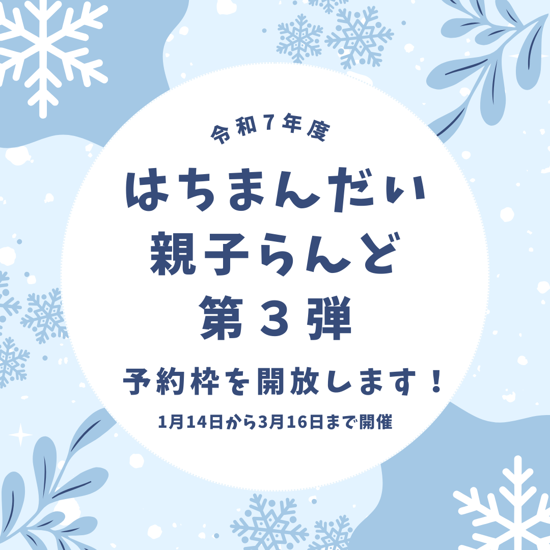 はちまんだいでは、2026年1月~3月の間、未就園児の方(1〜3歳)を対象に親子らんど第3弾を開催します