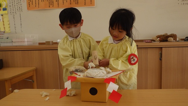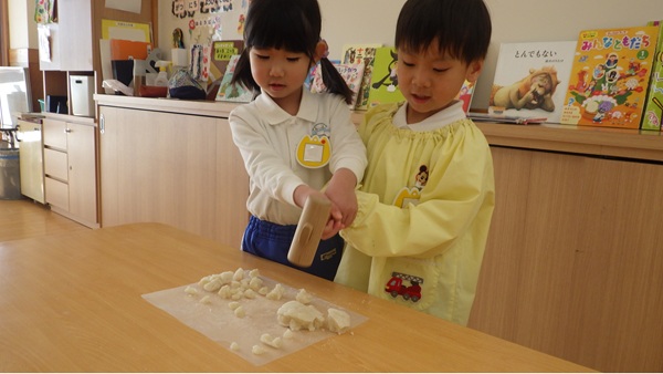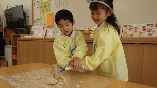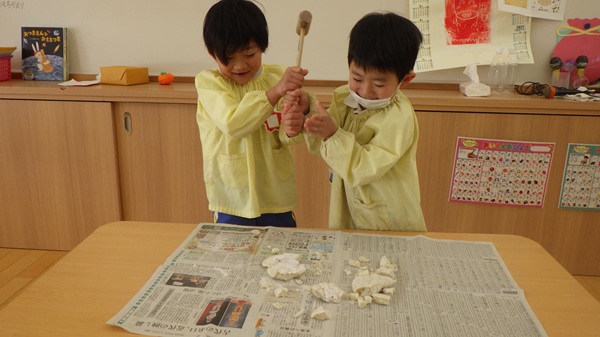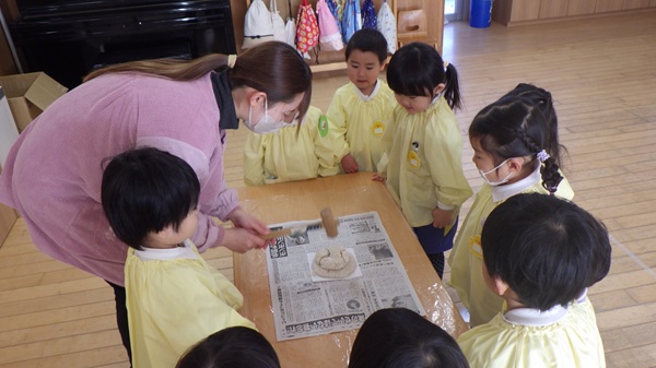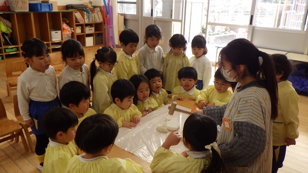「病気をせず、健康な身体で過ごせますように」「幸せな一年になりますように」と願いを込めて鏡もちを割り、お正月に来てくださった年神様に感謝しました。