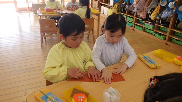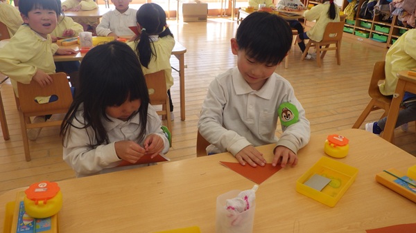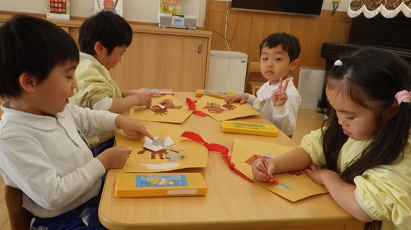 「馬さん走ってるみたいに手形する!」「前髪短くして貼る!」「くるくるのしっぽにする!」「お馬さんの足が速そうに描く!」と思い思いに取り組む姿が見られました。