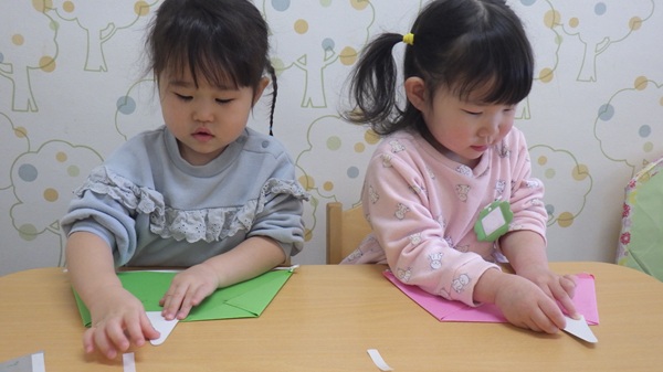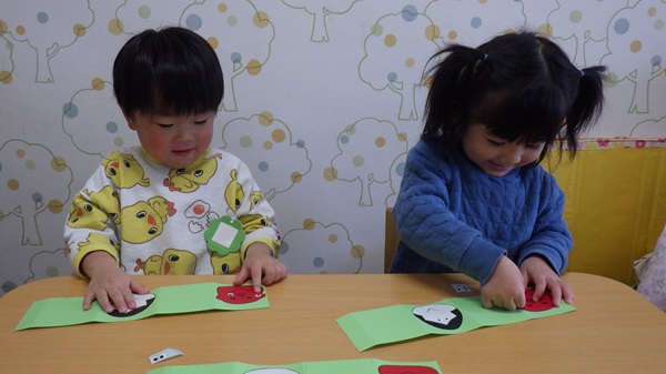 めろん組さんは節分に向けて鬼のお面と豆入れ作りを行いました。