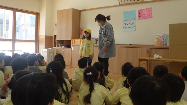 年長組さんでは、25日のお別れ遠足に向けて、先日プラネタリウム観覧で訪れたコジマ子どもサイエンスパークの遊具で遊ぶことや、持ち物・お約束について、学年集会で確認しました。