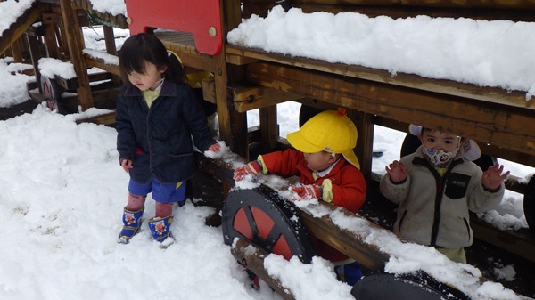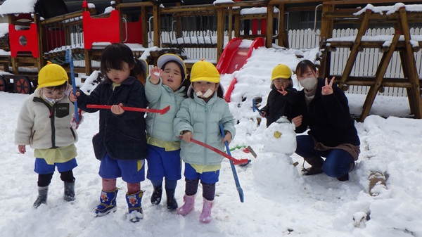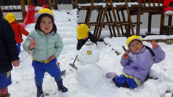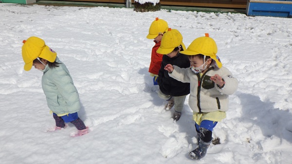 雪遊びをしたよ♪(ひよこ組) 2026 3/10 こども園の様子 2026年3月10日 今日は園庭にたくさん雪が積もったので、雪遊びをしました。ふかふかの雪に大興奮のひよこ組さん!「つめたい~!」と言いながら雪を触ったり、雪だるまを作ったりと、たくさん雪に触れて楽しみました♡ こども園の様子 宝物バッグ作り(年長組) お楽しみ会(年少組)