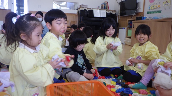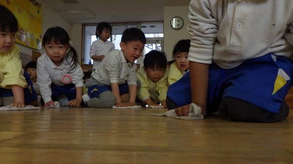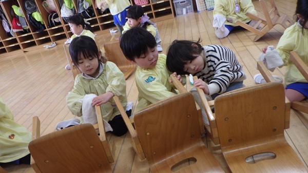 4月から年少組になるお友だちが気持ちよく使えるようにピカピカにして、お部屋が気持ちよくなりましたね!