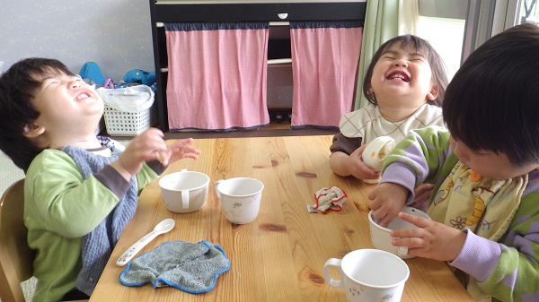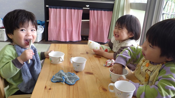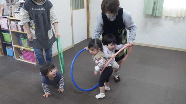 3月のいちご組さんの姿です。三人の楽しんでいる素敵な表情をご覧ください。