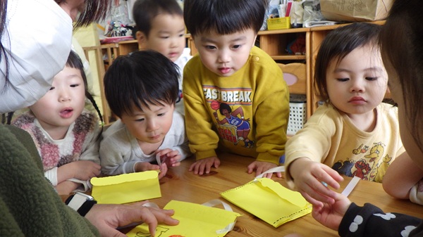 ばなな組で過ごす最後の日となったばななぐみさん。この1年間でたくさんの成長を見せてくれました。「はやくめろんさんになりたーい」「明日はめろんさん?」「めろんさんになりたいから頑張る」と進級を楽しみにしていました。入園当初は、初めてのことがたくさんで不安だった子どもたちも、頼もしいお兄さん、お姉さんになってとても嬉しいです。