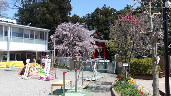 昨日までの雨はどこへやら、青空のもと桜が美しく舞う中、少し大きめの制服に身を包み、保護者の皆様とともに登園する年少組・年中組のお子様たちの姿がとてもかわいらしく眩しく見えました。