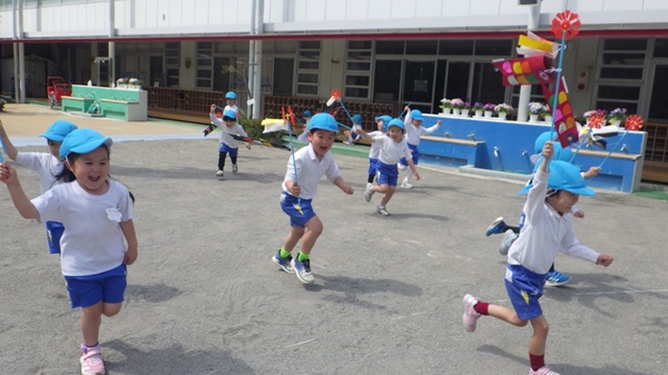 年長組での最初の製作、こいのぼり作りを行いました。