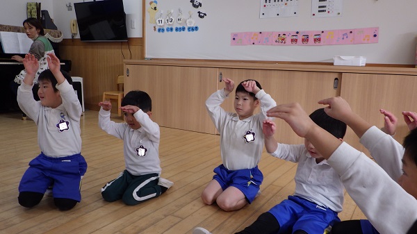 今日は、ふじぐみがちかえ先生とリトミックを行いました。その様子です。