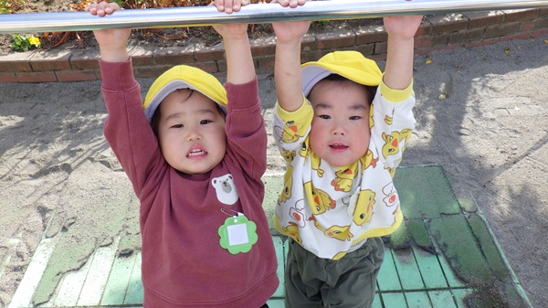 今日は、園庭の鉄棒でぶら下がりに挑戦しました。初めての鉄棒に「早くやりたい!… -
