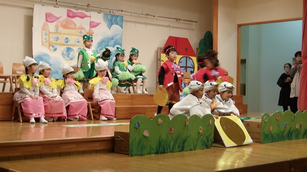 発表会1日目の今日は、年中組さんの発表でした。年中組さんは、初めての役ごとに台詞がある発表会となります。本番前には緊張した表情を見せていた子どもたちでしたが、同じ役のお友だち同士で心と声を合わせて元気いっぱいに楽しく演じることができまし... -